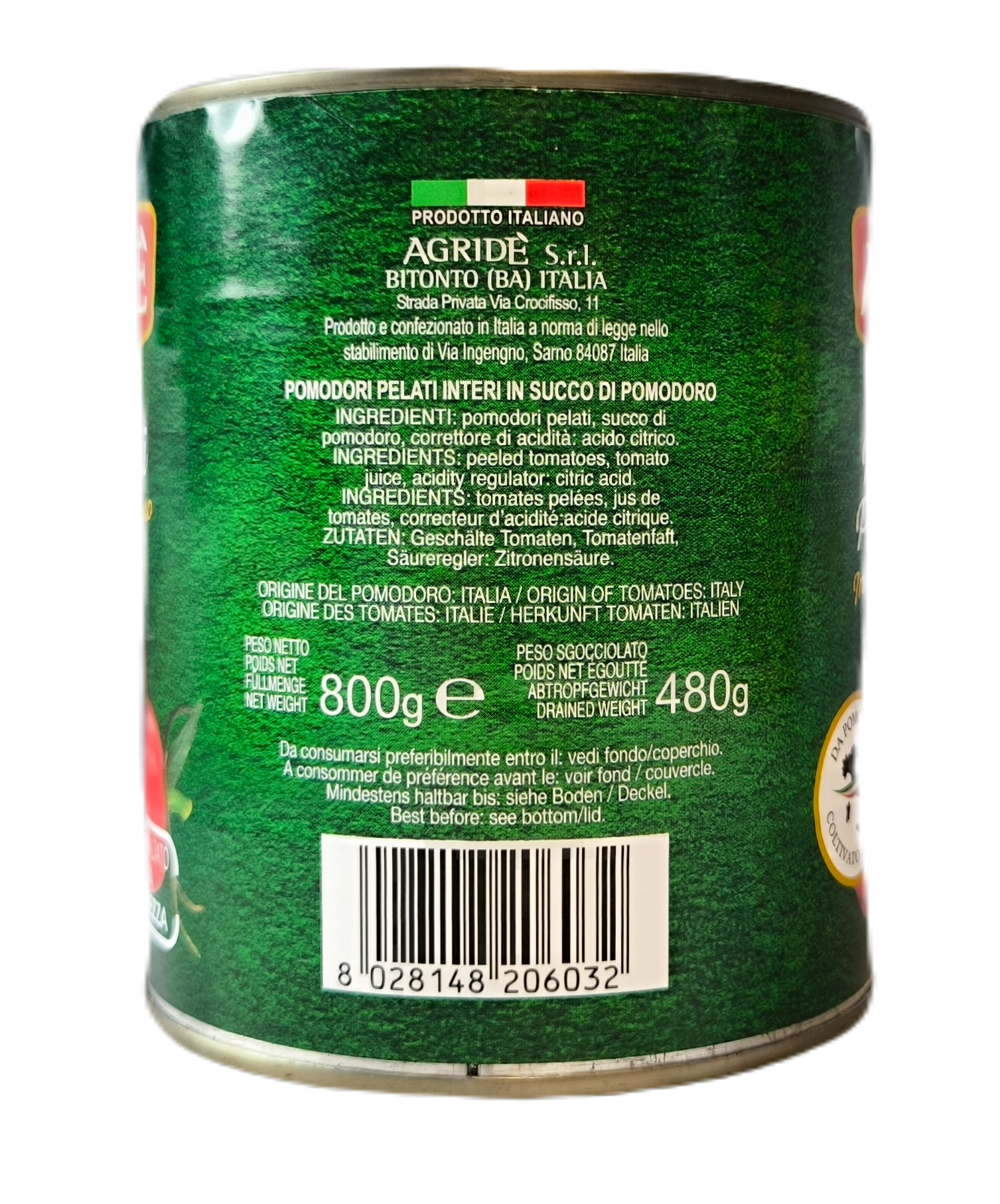 AGRIDE PELATI POMIDORY 800G W CAŁOŚCI PUSZKA