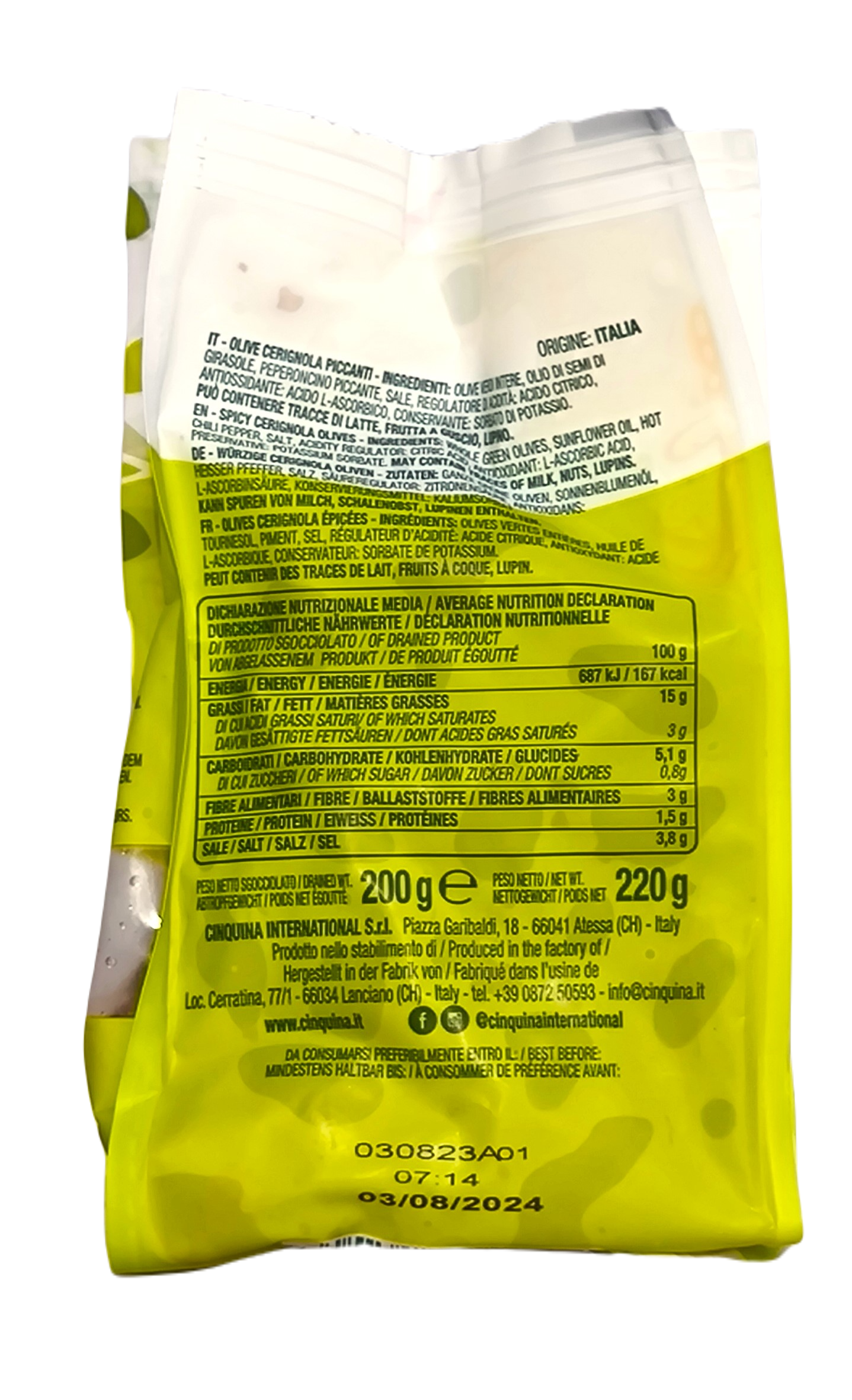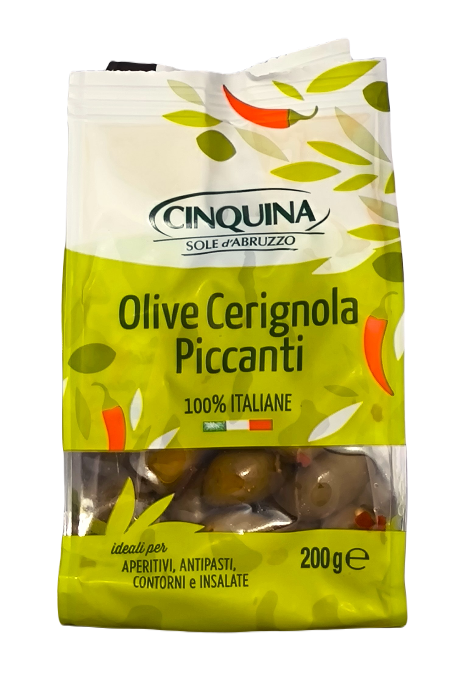 CINQUINA OLIVE PICCANTI 200G WŁOSKIE PIKANTNE OLIWKI Z PESTKAMI